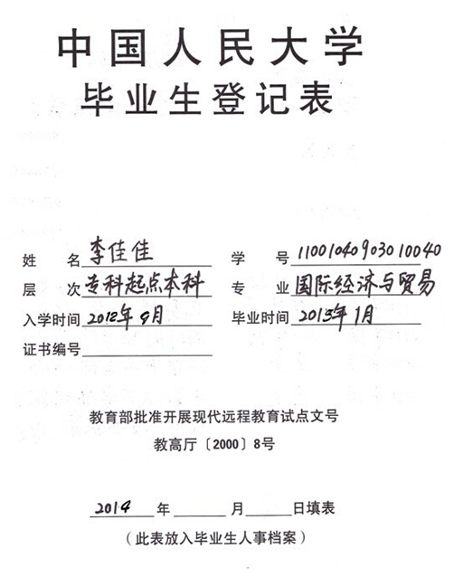 填表時(shí)須用黑色的簽字筆或鋼筆字跡工整,不得涂改,不得折疊、損壞。