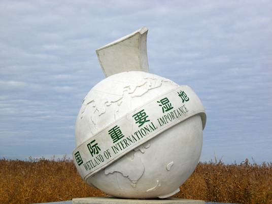 這次再游扎龍時(shí),已是秋季,到處一片金黃……景區(qū)已鋪設(shè)了游覽觀光棧道,立上了“國(guó)際重要濕地”的標(biāo)志,人與鶴之間有水溝相隔,可以近距離觀望,但再也不能“親密接觸了”,這或許是“禽流感”之后的舉措吧,防止人禽相互感染。